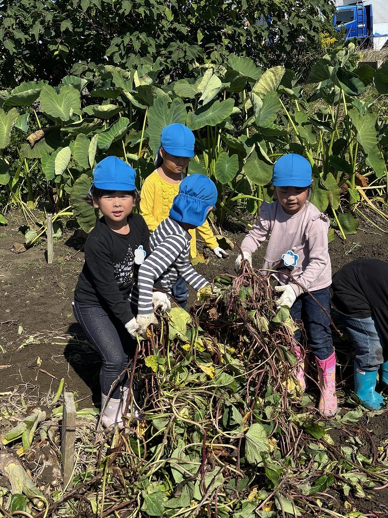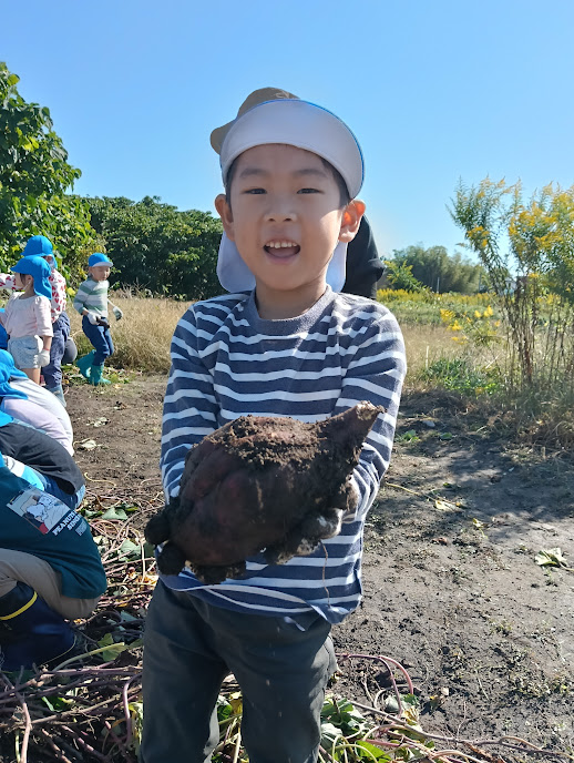 大収穫!! 春に植えたさつま芋の苗が収穫の時期を迎えました。 今日は晴天、芋ほり日和になりました。 まずは、つるを引っ張ります。 出てくる出てくる大きなお芋!夢中になって掘っていました。 「みてみて、おっき~い!」「赤ちゃんのお芋があったー」みんな大興奮です。 大収穫の芋ほりとなりました。「早く食べたいな~」「甘いかな」どうやって食べるか楽しみな子どもたちです。 By hoikuen | 2025年10月15日 | 保育園のいま | No Comments | ← 第60回!親子運動会 コメントを残す コメントをキャンセルメールアドレスが公開されることはありません。 ※ が付いている欄は必須項目ですコメント ※ 名前 ※ メール ※ サイト 次回のコメントで使用するためブラウザーに自分の名前、メールアドレス、サイトを保存する。 Δ このサイトはスパムを低減するために Akismet を使っています。コメントデータの処理方法の詳細はこちらをご覧ください。