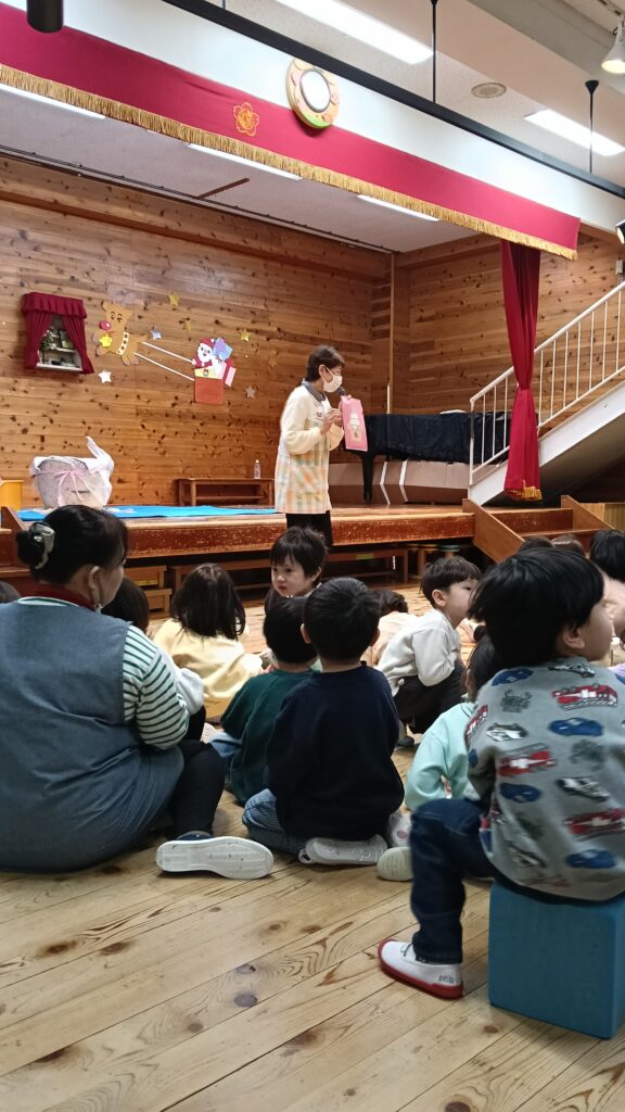 園長先生からもちつきのお話しをしていただき、もちつきの歌をみんなで唄いました♪