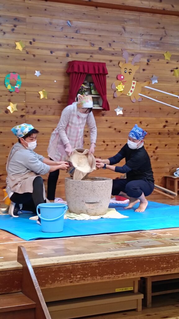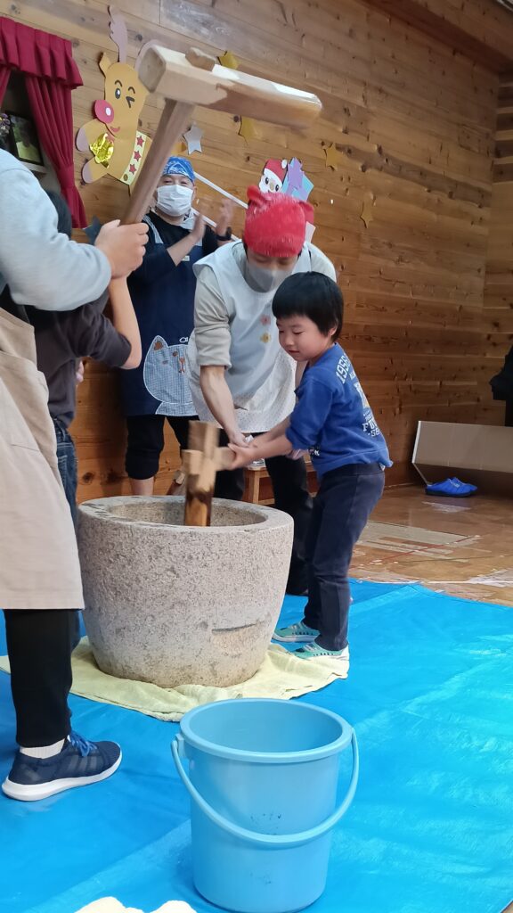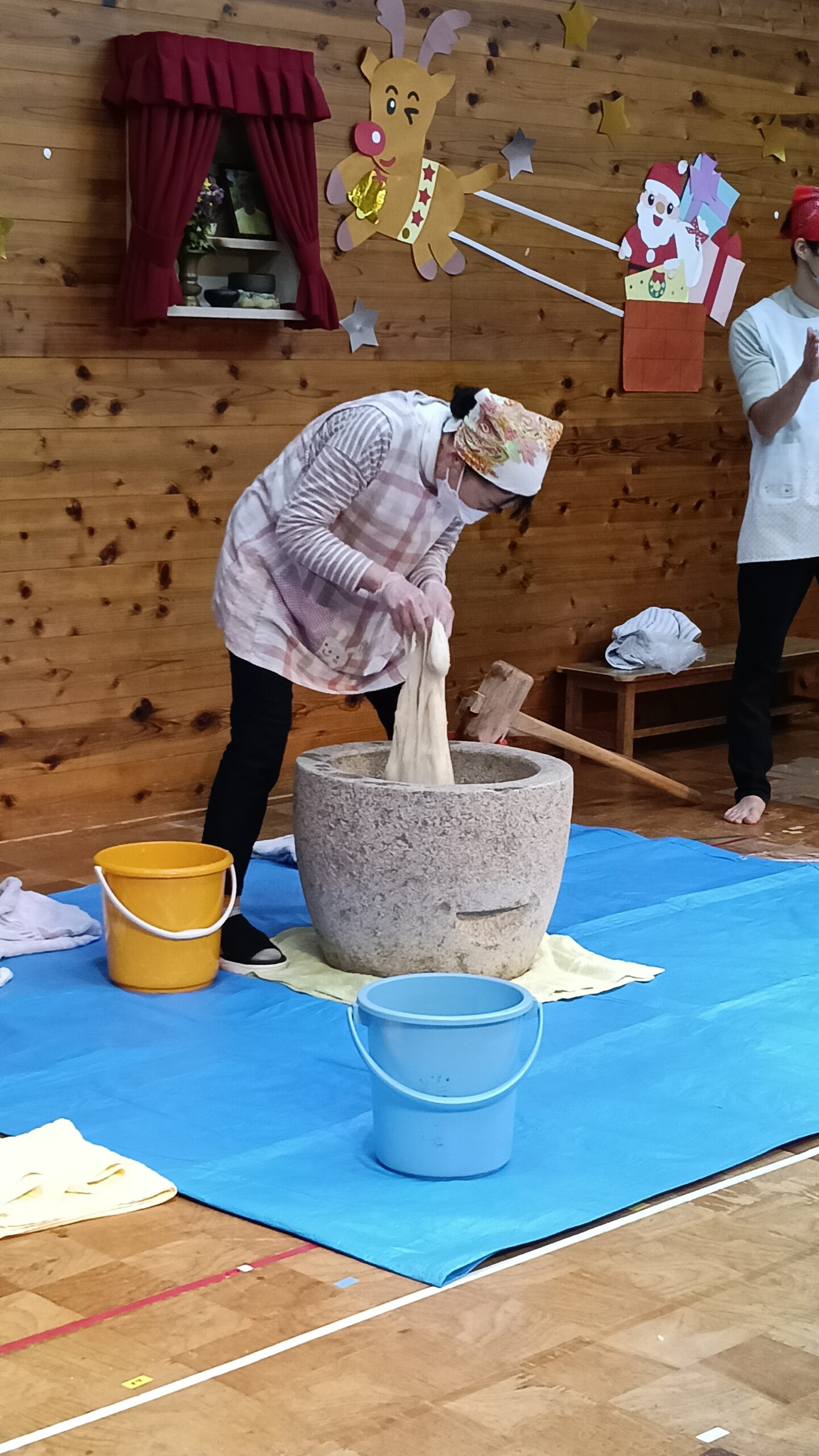 今日は年末恒例行事の「もちつき大会」を行いました。