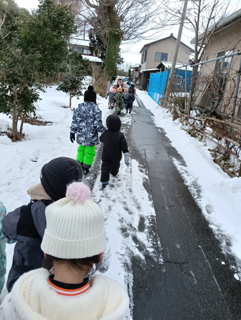 1月あるけあるけ大会⛄ 今日は雪が道に残る中、ひばりさんとこばとさんでお散歩に行ってきました! 雪の中を「気持ちいいね~」「あそこツルツルするから滑らないようにね!」と声を掛け合いながらたくさん歩いてきましたよ。 お散歩の後には運動場でお弁当も食べましたよ!美味しそうなお弁当をたくさん見せてくれました。 美味しかったね♪ By hoikuen | 2026年1月29日 | 保育園のいま | No Comments | ← おひさまの日🌞~幼児組~ コメントを残す コメントをキャンセルメールアドレスが公開されることはありません。 ※ が付いている欄は必須項目ですコメント ※ 名前 ※ メール ※ サイト 次回のコメントで使用するためブラウザーに自分の名前、メールアドレス、サイトを保存する。 Δ このサイトはスパムを低減するために Akismet を使っています。コメントデータの処理方法の詳細はこちらをご覧ください。