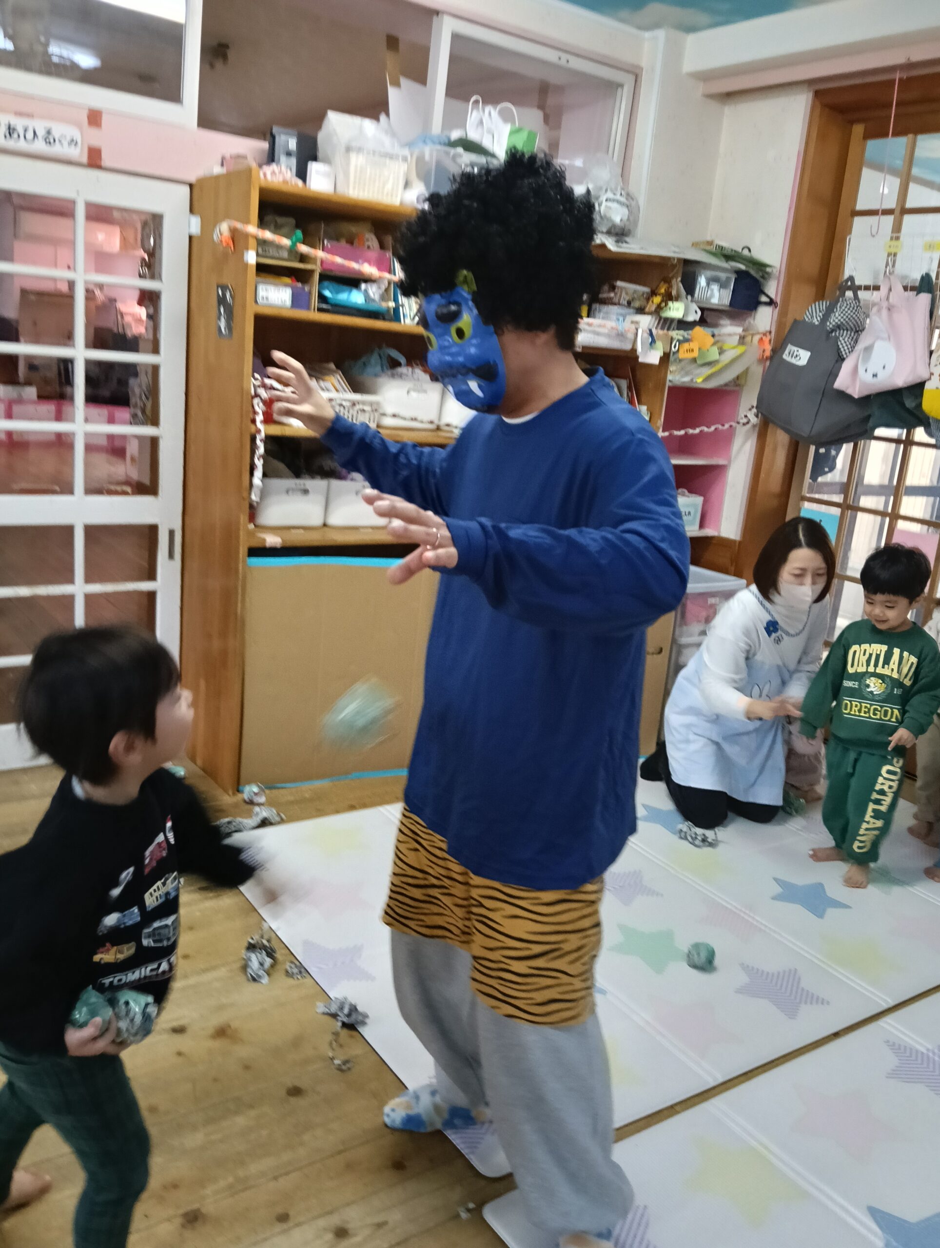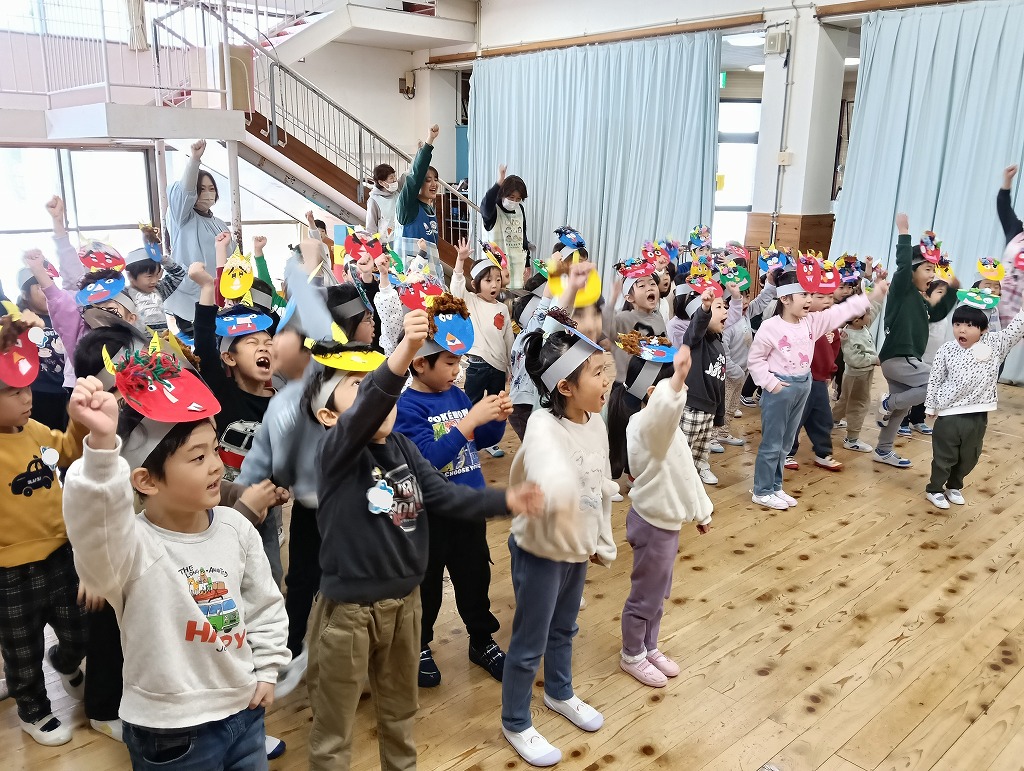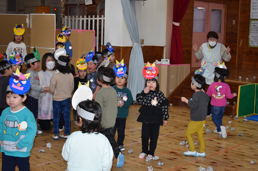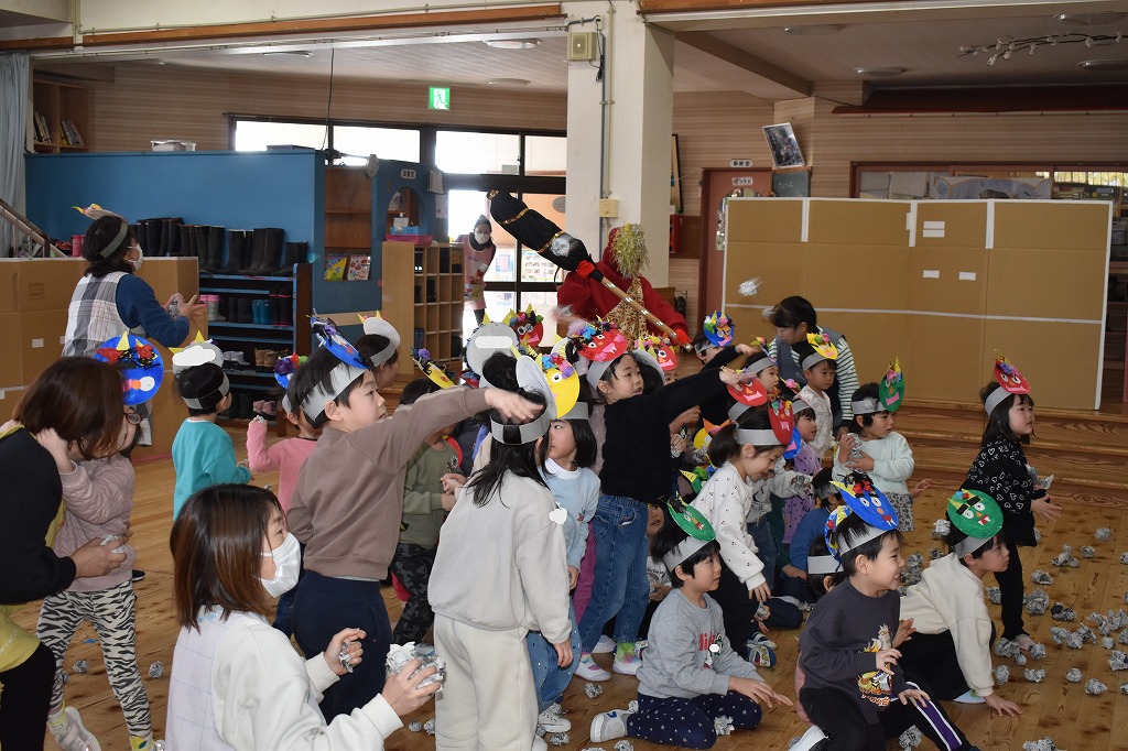 恒例の豆まき大会を行いました。それでは各クラスの様子をご紹介します。