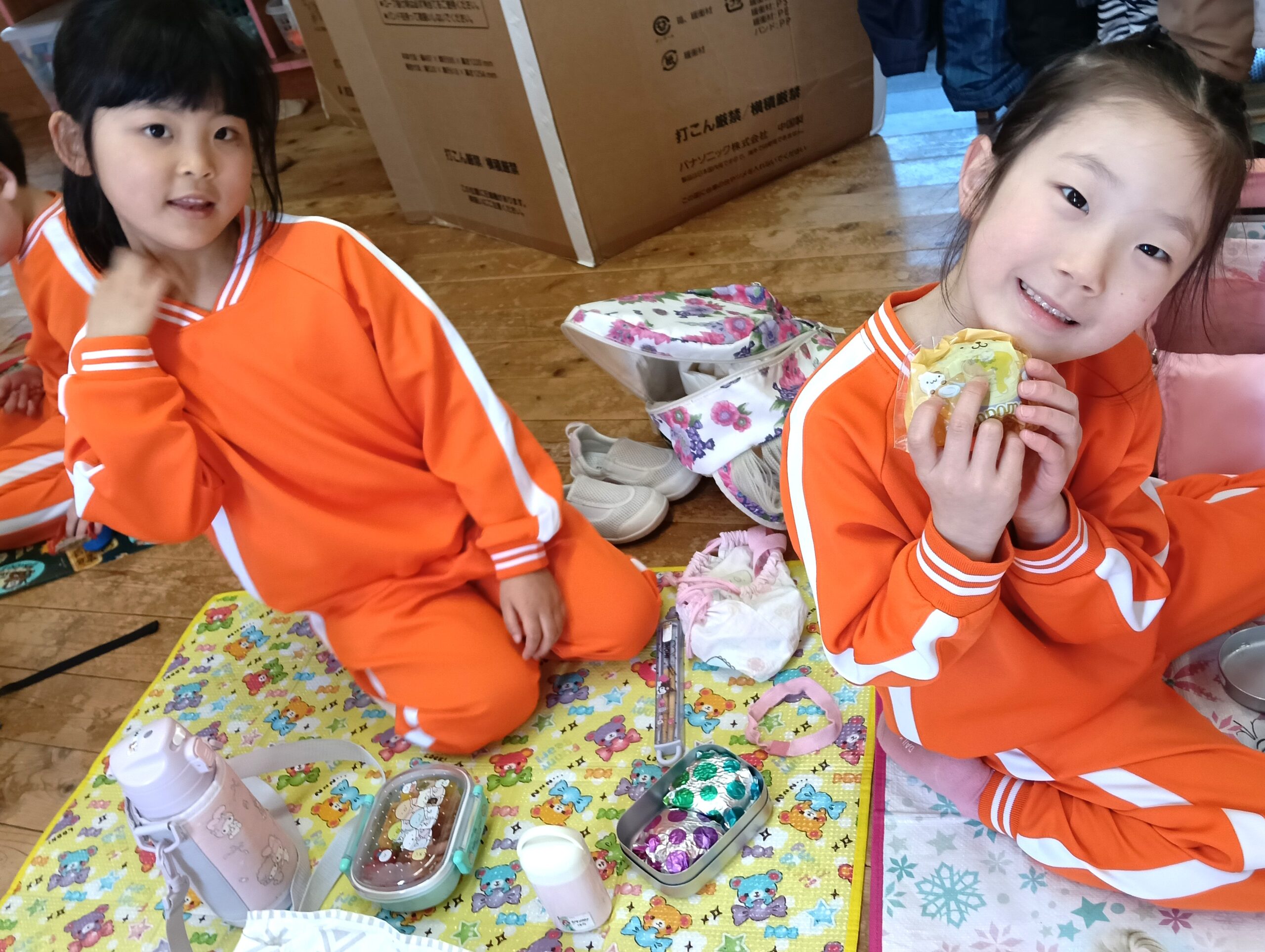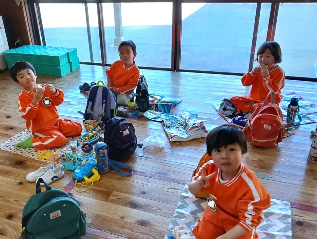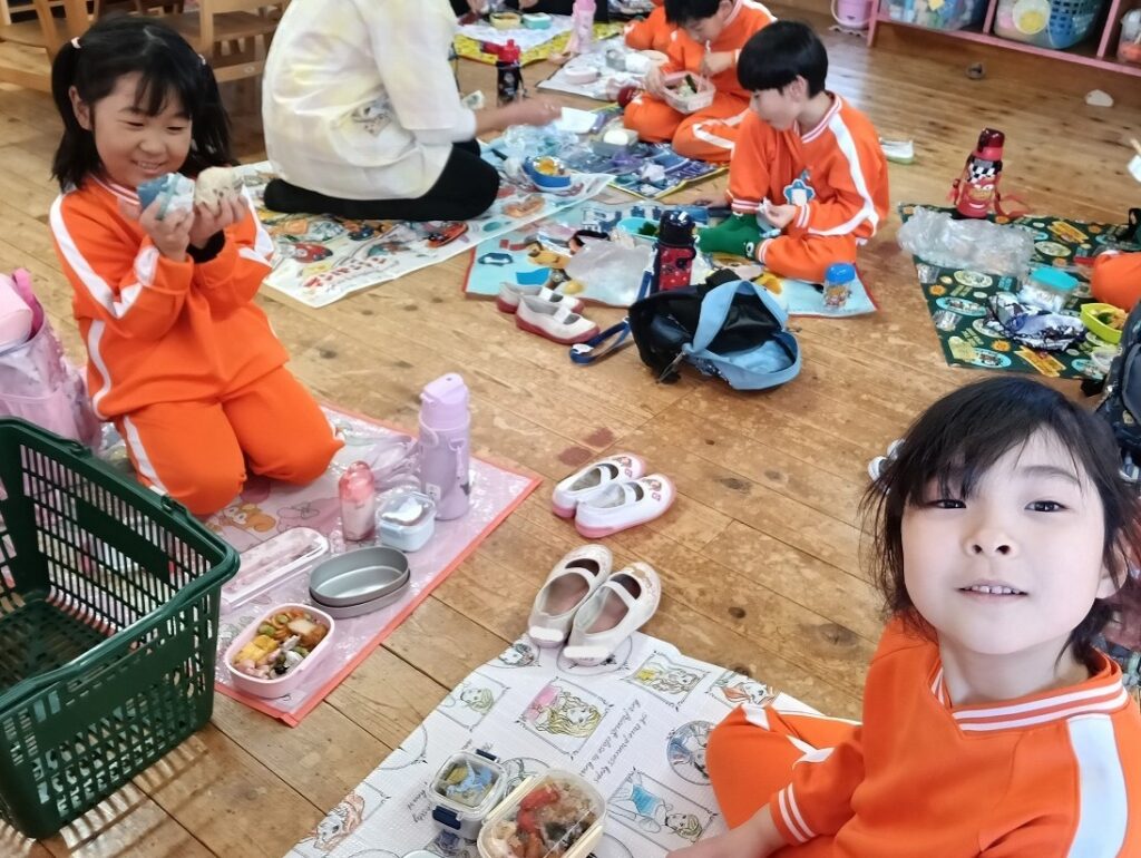 たくさん遊んだ後は待ちに待ったお弁当の時間です!みんなで、お弁当を見せ合い、その後は美味しそうに食べていましたよ♪準備ありがとうございました。