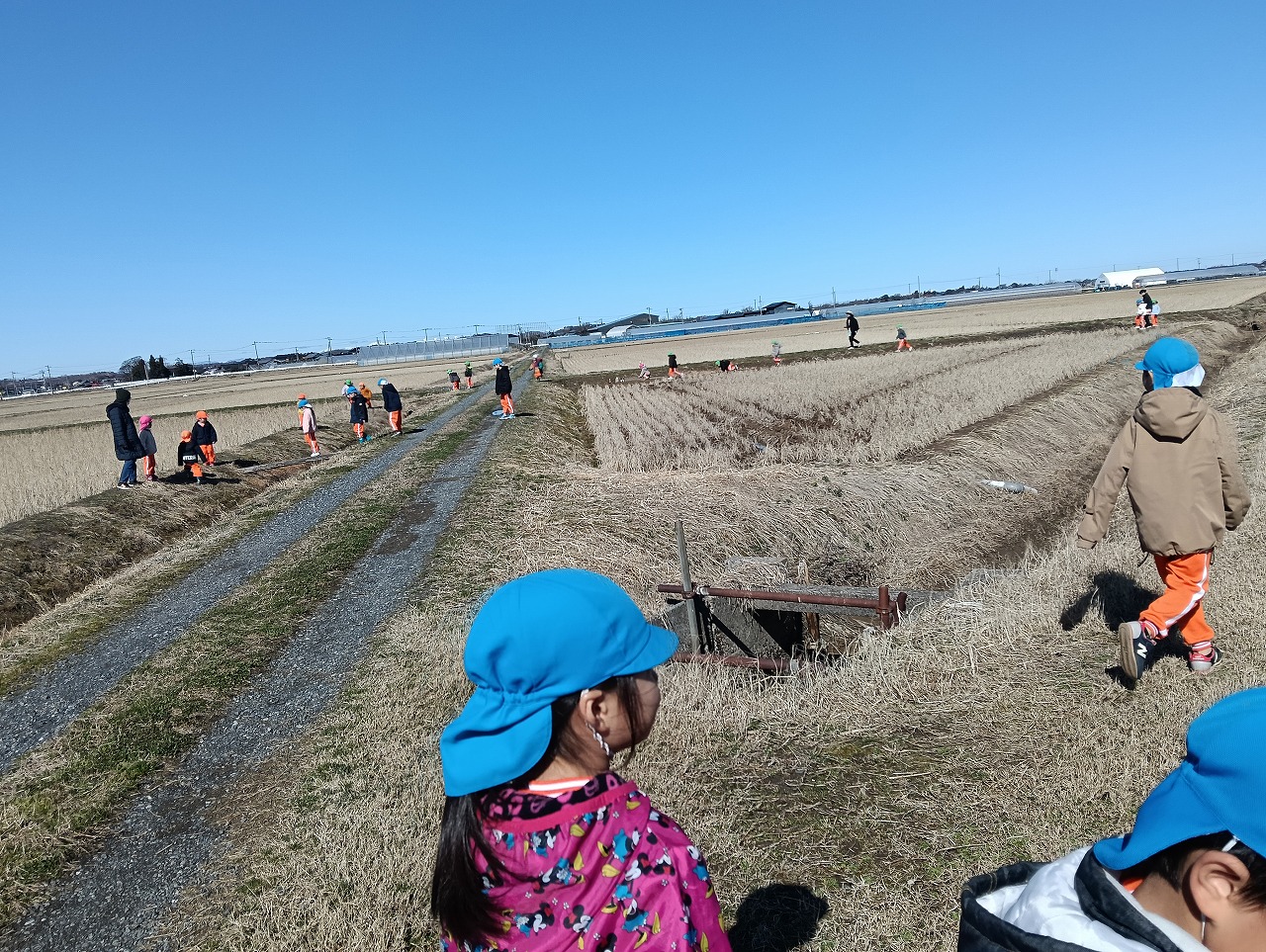 三角田んぼへ行って来ました。あぜ道歩き、一本橋渡り、鬼ごっこ、、、たっぷり遊んできました。