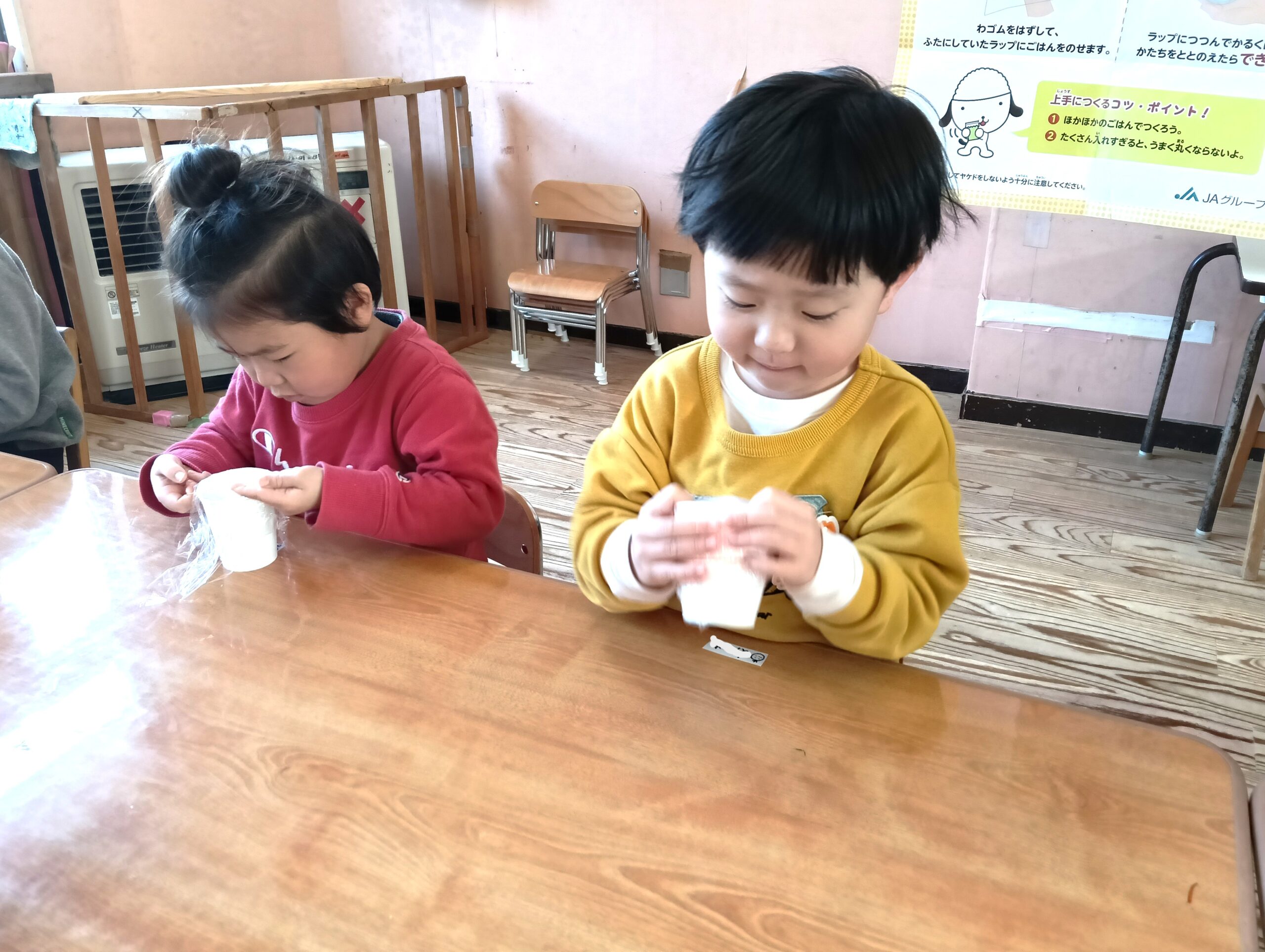 今日はこばとさんが午後のおやつに、シャカシャカおにぎり作りをしました。